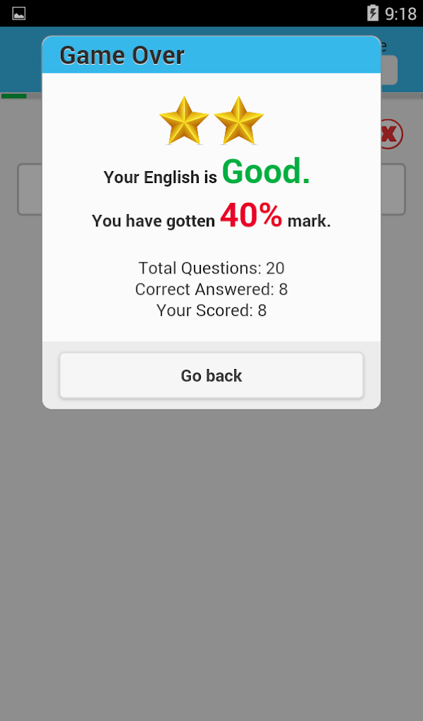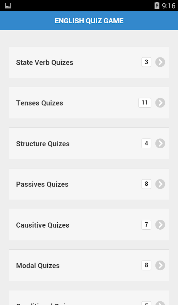 English Quiz Game is very useful app for new English learner Basic to Advance. It has Tenses, State Verb, Structure, Passive, Causative, Modals, Conditionals Quiz. After play, you can see your result with Stars. Download & Install here...